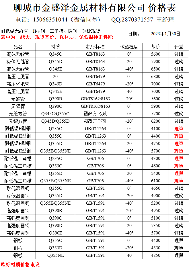 聊城市金盛澤金屬材料有限公司主營(yíng)低合金/耐低溫?zé)o縫管,方矩管,H型鋼,工字鋼,角鋼,槽鋼,圓鋼,鋼板;現(xiàn)貨供應(yīng):大無(wú)縫、包鋼、煙寶、鳳寶正品耐低溫?zé)o縫管,專(zhuān)業(yè)加工生產(chǎn)無(wú)縫方矩管;經(jīng)營(yíng)一線品牌型材:萊鋼/包鋼/馬鋼/日鋼 耐低溫Q235B/C;Q355B/C/D/NE H型鋼(100*100-1000*300) 偏型號(hào)H型鋼鋼現(xiàn)貨:250/255,248/124,344/348,394/398,506/201,606/201,458/417,912/302,692/300,792/300 ;萊鋼/馬鋼/宣鋼產(chǎn) 耐低溫槽…